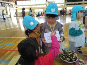 お兄さんお姉さんが優しくルールを教えてくれて、保育士がそばにいなくても、上手にお店を周れたね🎵