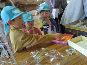 30円のチケットで買えるバザーでは、手作りのアクセサリーやキーホルダーがあり、悩みながらお買い物を楽しみました🌟
