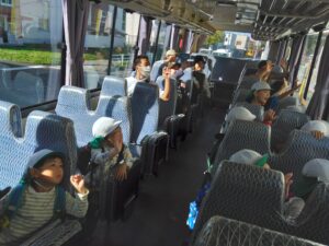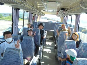 ボランティアで参加してくれたお父さん、お母さんも一緒にバスに乗って出発です🚌