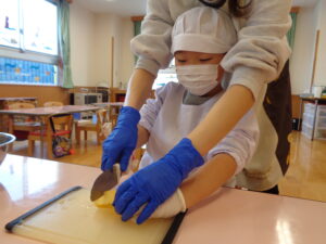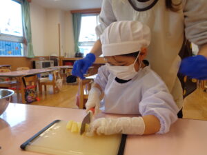 保育園では初めてのお料理体験だったので、子どもたちはとっても嬉しそうでしたよ😆