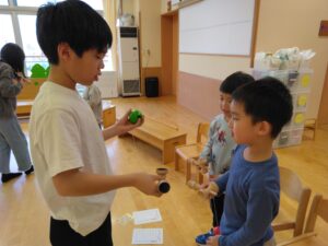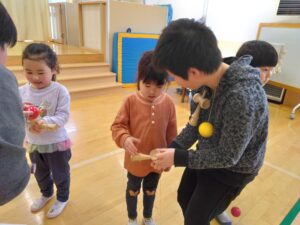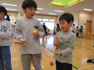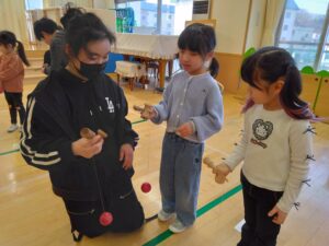 後半は、小学生がきりん組・うさぎ組にけん玉を教えてくれました😊