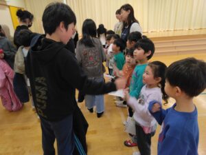 3月26日(木)上湯川小学校の学童すずらんクラブのお兄さん・お姉さんが、保育園に遊びにきてくれました😊