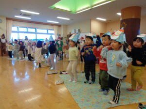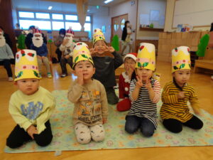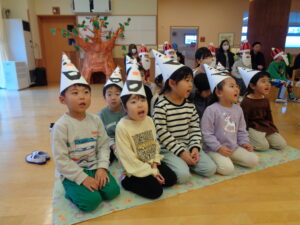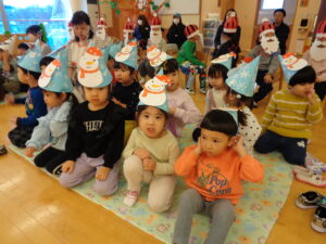 自分たちで作った帽子をかぶって、いつもより少しだけソワソワしていた子どもたち😄