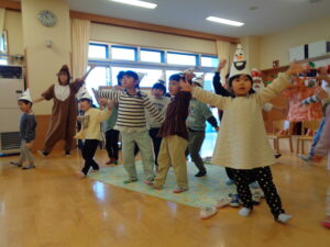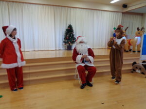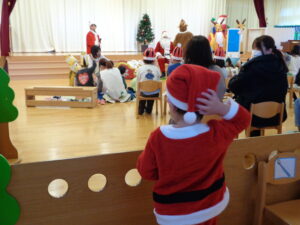 プレゼントのお礼に、3・4・5歳児からジングルベルの踊りをサンタさんにプレゼントしました😊