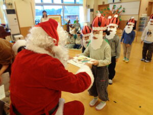 一人ずつサンタさんにお礼を言ってプレゼントを受け取りました🎁