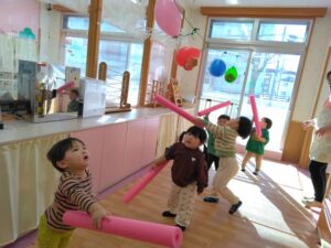 小さいクラスでも、風船についた鬼を退治したり、豆ボールを一生懸命投げていましたよ💕