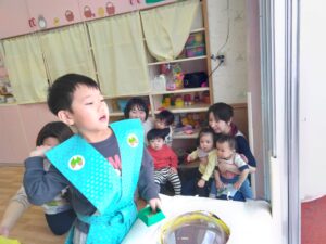 他のお友だちもチームに分かれて、保育園の色々なお部屋に豆をまいてくれました!!