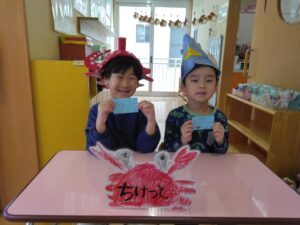 答えてくれました。前日の節分では、しっかり鬼退治できたようで