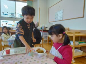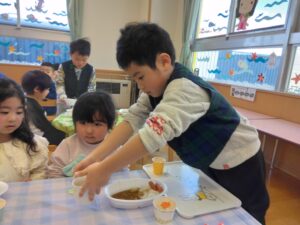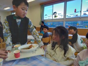 節分の日に保育園を代表して豆まきをしてくれた年長さん!