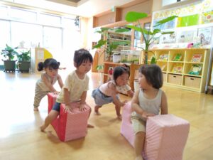 お友だちが遊んでいる姿を見て真似したり、同じように遊んだりしていますよ☺