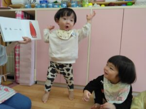 保育者と一緒に模倣あそびを楽しんだり