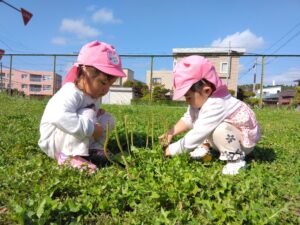 ひよこ組のお友だちも天候を見てグランドに行き、体を動かしたり