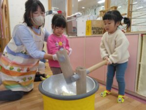 部屋ではおもちつきごっこをしました。